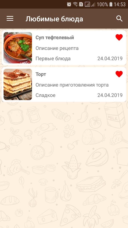 In der Kochbuch-Anwendung können Sie Ihre Lieblingsrezepte für Speisen aufnehmen, mit Freunden teilen und auf Ihr Telefon hochladen. Rezepte können in Kategorien eingeteilt werden, so dass Sie jedes Gericht immer finden können, indem Sie die gewünschte Kategorie auswählen. Guten Appetit!