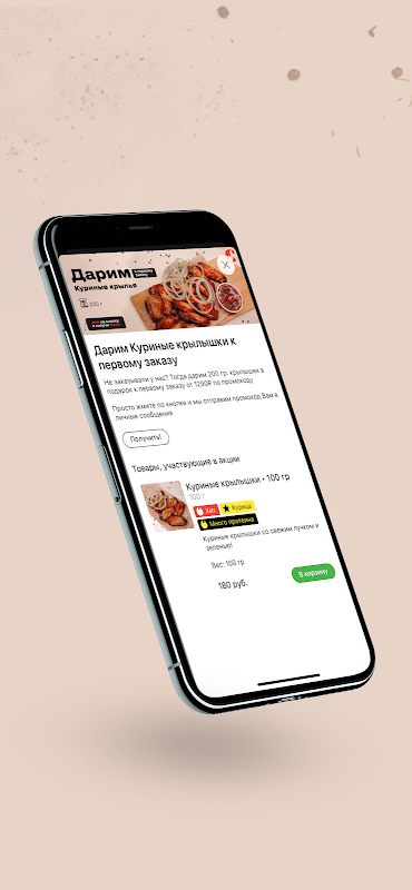 Wir geben einen Drumstick 200 g bei einer Bestellung ab 1200 Rubel über eine mobile Anwendung mit dem Promo-Code 6967
