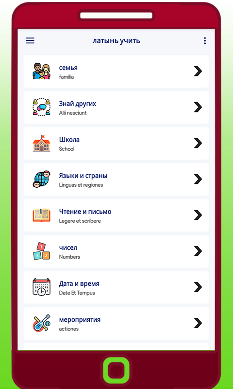 Латинский язык для детей имеет очень простые функции и прост в использовании. Обучение латинскому языку это лучшее приложение для изучения латинского произношения для начина. Weitere Informationen zu diesem Thema finden Sie im Artikel. Bei Auswahl von Optionen wird ein Fehler angezeigt. Обучение латинскому языку приложение потребляет меньше места вашем мобильном телефоне.