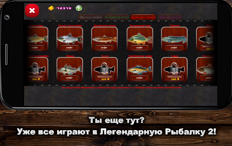 Множество рейтингов, после выуживания вам показывается результаты рыбаков в реальном времени, разнообразные достижения, задания с увлекательным процессом выполнения и описанием поставленной задачи. На главном экране вы найдете чат онлайн рыбаков можете задать там вопросы, поэтому бери удочку или спиннинг в руки и покоряй вершины рыбаков.