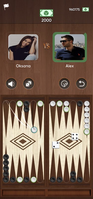 Langes Backgammon und kurzes Backgammon spielen: Würfeln und die Spielsteine gegen den Uhrzeigersinn bewegen. Ziel: Bewegen Sie vor dem Gegner alle Spielsteine einen vollen Kreis um das Spielbrett und nehmen Sie die Spielsteine aus dem „Haus“.