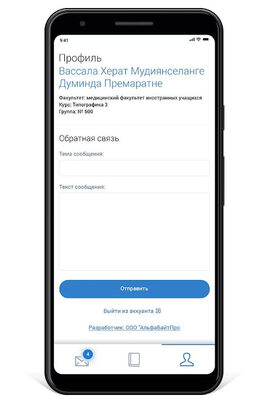 Der Antrag ist für den sofortigen Eingang von Informationen von Dekanen bei Studierenden vorgesehen. Die Anwendung wird für Studenten verwendet, um individuelle Informationen aus verschiedenen Quellen zu erhalten.