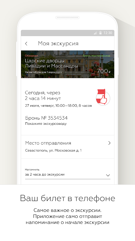 • Выбрать и купить туристическую услугу в любое удобное для вас время — все экскурсии в вашем смартфоне.