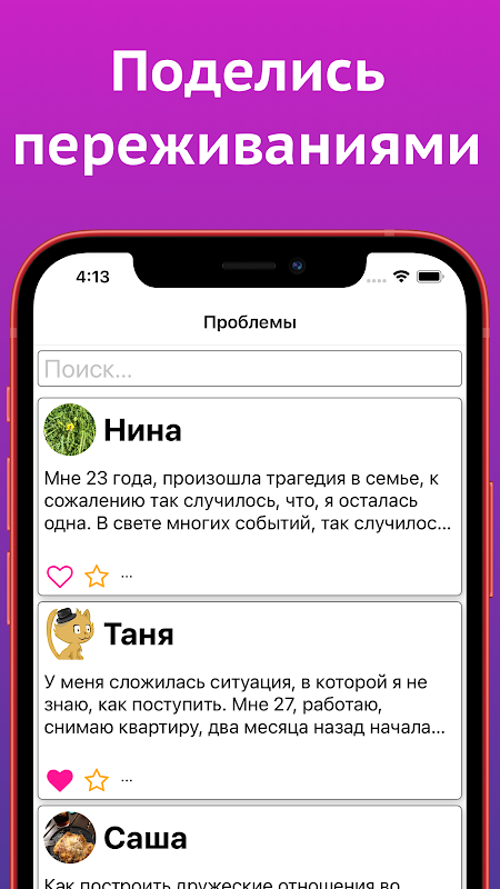 Это приложение — про психологию. Здесь вы можете поделиться своей проблемой с другими людьми. Люди прокомментируют вашу проблему и помогут разобраться с ситуацией.