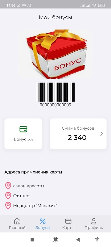 - Verwenden Sie den Barcode einer Bonuskarte, eines Zertifikats oder eines Abonnements in Ihrem Telefon (Sie müssen keine Plastikkarte bei sich tragen, der Barcode kann auf dem Telefondisplay abgelesen werden).