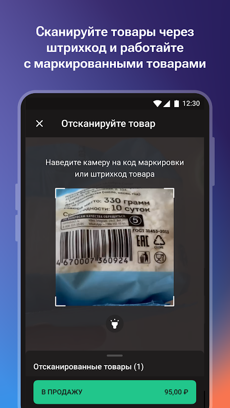 Der Service vereint die Funktionen von drei Geräten in einem Smartphone: Registrierkasse, Scanner und Zahlungsterminal. Sie müssen keine zusätzliche Kassenausstattung für Außendienstmitarbeiter oder Scanner für die Arbeit vor Ort anschaffen.
