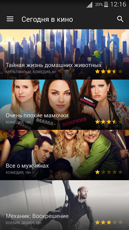 Просто выберите фильм, кинотеатр, сеанс и места в зале. Оплатить можно как пластиковой картой, так и со счета мобильного телефона. Без всяких хлопот вы всегда получаете билеты на лучшие места!