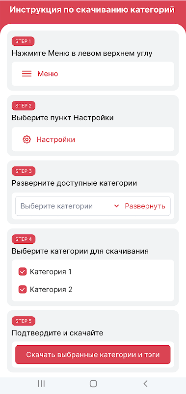 Nachdem Sie Ihre bevorzugten Kategorien ausgewählt haben, klicken Sie auf die Schaltfläche „Ausgewählte Kategorien und Tags herunterladen“, um mit dem Herunterladen der ausgewählten Kategorien zu beginnen.