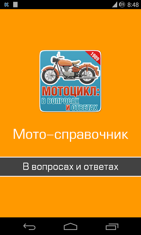 Установите приложение "..."- и у вас под рукой готовый ответ на любой ваш вопрос по мотоциклу. Приложение работает без интернета, поэтому вы даже в глухом лесу сможете быстро найти информацию о ремонте и обслуживании мотоциклов, увидеть нужную схему или таблицу данных. Понравившиеся советы и схемы можно добавлять в избранное для удобного пользования.