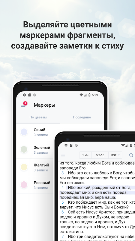 • Markierungen - Die Möglichkeit, den gesamten Vers und die Passage mit Farbmarkierungen hervorzuheben.