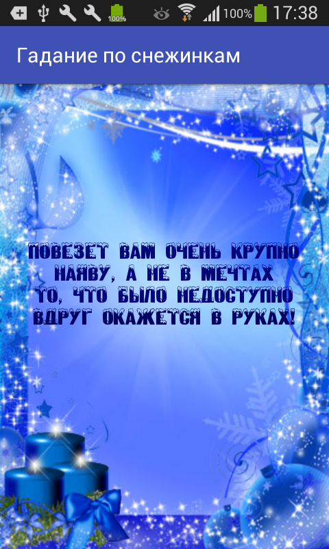 Необычайно красивое гадание. В хороводе порхающие снежинок каждая снежинка таит в себе предсказание на наступающий год. Нужно только коснуться той, которая кажется самой красивой. Найдите свою счастливую ледяную звезду!