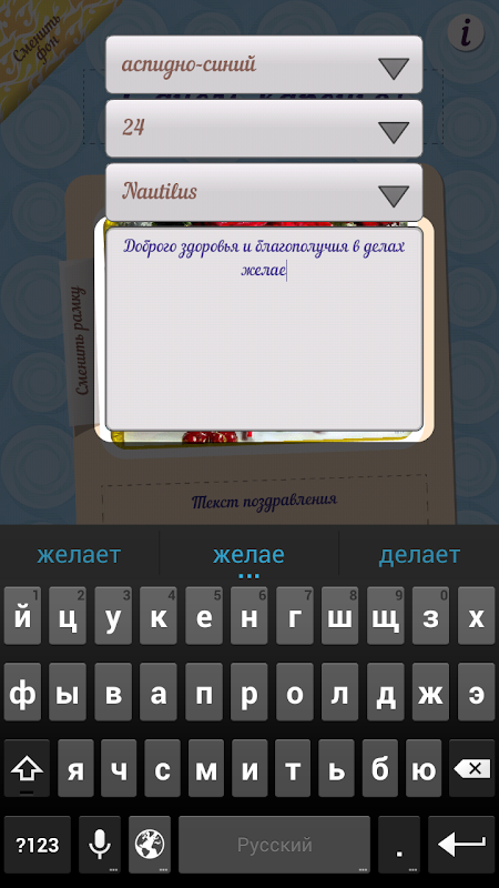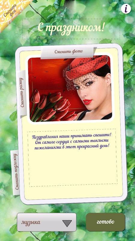 - только ваша творческая фантазия ограничивает возможности редактора музыкальных открыток