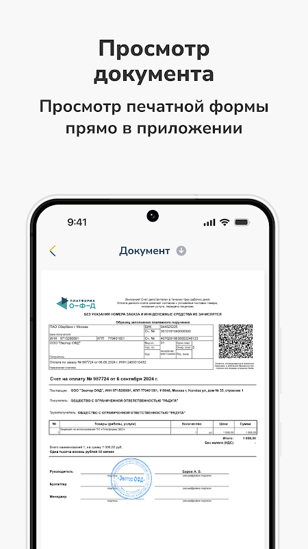 Die EDF-Plattform-Anwendung dient als komfortable und zuverlässige Fortsetzung des gleichnamigen Webdienstes für die rechtlich bedeutsame elektronische Dokumentenverwaltung. Mit der Anwendung können Sie Listen von Dokumenten anzeigen, einschließlich der Verwendung von Filtern, die Dokumente selbst anzeigen und den EDF-Status schnell verfolgen. Beschleunigen Sie die Interaktion mit Gegenparteien, indem Sie Einladungen zum Roaming (Austausch von Dokumenten zwischen Abonnenten verschiedener Betreiber) direkt aus der Anwendung senden. Die Anwendung und der Webdienst der EDF-Plattform verfügen über einen einheitlichen Support-Service, sodass Sie bei Bedarf schnell neue Anfragen in der Anwendung erstellen können.
