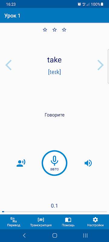 2. Sie sprechen das Wort auf dem Bildschirm aus und verwenden dabei die Transkription als Hinweis.