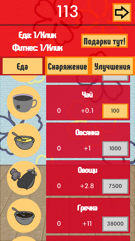 С помощью магазина приобретайте новые способы похудения, которые увеличивают (или уменьшают) сумму очков за соответствующий клик.