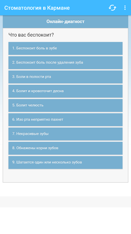 Разумеется, онлайн-диагност не заменит вам похода к врачу, однако он станет для вас прекрасным помощником в подготовке к визиту к стоматологу.