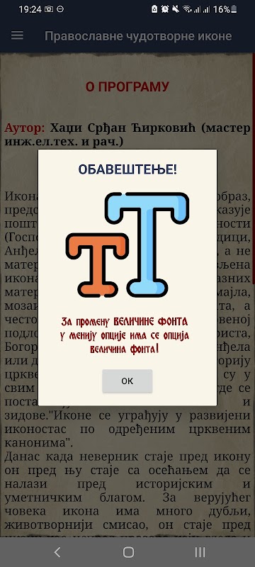 За промену ВЕЛИЧИНЕ ФОНТА у менију опције има се опција величина фонта!