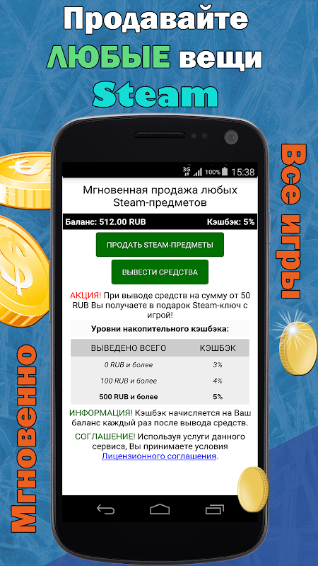 Mit APKPure können Sie Продать скины CS:GO Dota 2 Steam вещи мгновенно APK einfach und sicher mit Signaturüberprüfung herunterladen.