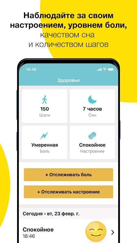 • Ermüdungsgrad, Stimmung, Schmerzniveau und Schlafqualität verfolgen; Integrieren Sie Daten aus Gesundheitsüberwachungsanwendungen und tragbaren Geräten (unter Berücksichtigung der Anzahl der Schritte und der Schlafdauer). Teilen Sie Informationen über Ihr Wohlbefinden und Diagramme Ihrer Dynamik