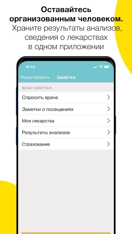 Audioaufzeichnungen von Fragen an den Arzt. Testergebnisse speichern,
