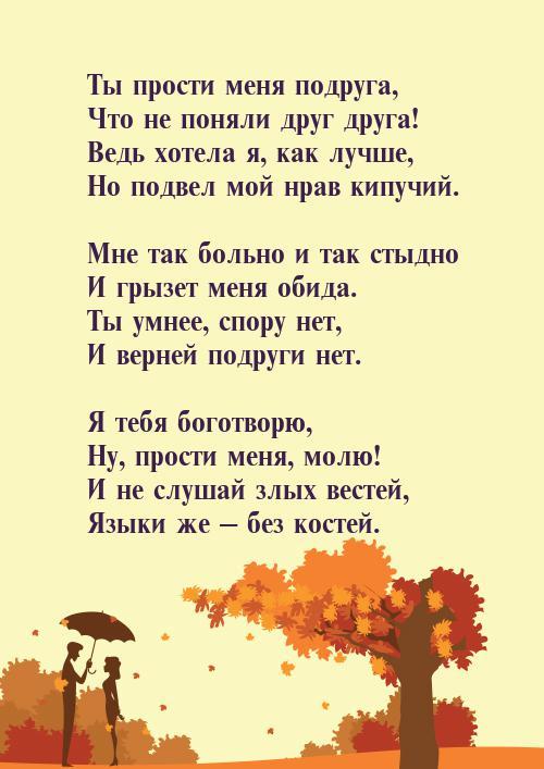 Когда нужно попросить извинения, хорошо подойдут стихи. И вовсе не важно, кому именно они адресованы — мужчине или женщине, ведь только слова в стихотворной форме обладают самым мощным эффектом. Такой эффект сочетает в себе не только радость от услышанного, но и неожиданность, переплетенную с массой приятных эмоций. Долой банальные извинения, постарайтесь удивить свою вторую половинку, родителей, друзей и всех тех, у кого Вы хотите попросить прощения за случайно нанесенную им обиду или свой необдуманный поступок.