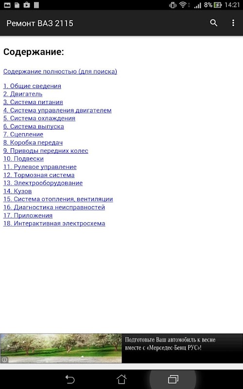 Мультимедийное руководство по ремонту ВАЗ 2115, ВАЗ 2114, ВАЗ 2113 от журнала "За рулем" адаптированное под андроид.
