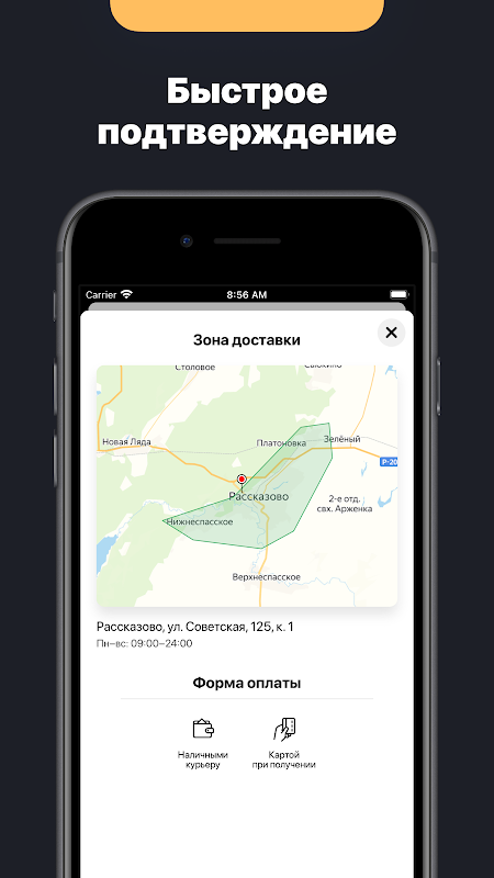 - Schnelle Bestellung mit sofortiger Bestätigung durch die Anwendung.