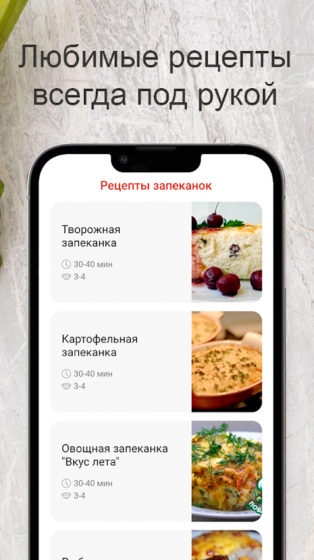 Komfortable Sammlung von Rezepten mit Schritt für Schritt mit Bildern und einem Einkaufswagen.