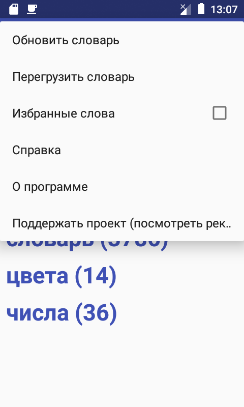 Добавлен тест по избранным словам, с возможностью выбора направления перевода тест и подсчетом правильных и неправильных ответов. Избранных слов должно быть не менее четырех.