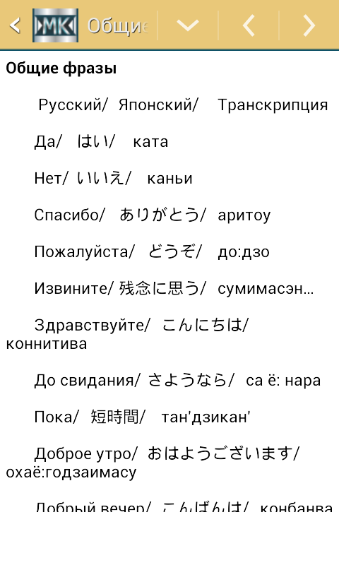 Русско-японский разговорник. Предположим, вы приехали в другую страну и совершенно не владеете местным языком. Для того, чтобы проще общаться за рубежом и чувствовать себя как дома, предлагаем пролистать перед поездкой разговорник. В данном разговорнике вы найдете общие фразы и фразы на темы гостиница, магазин (покупки), транспорт, экстренные случаи, ресторан.