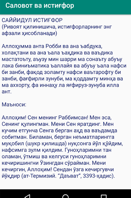 Zekrlar-Keying wurde erstellt. Duolar, Salovotlar, Istiғflar. Namozisch