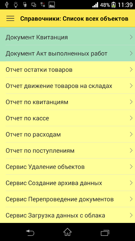 - отчеты по квитанциям, кассе, поставщикам, остаткам на складе
