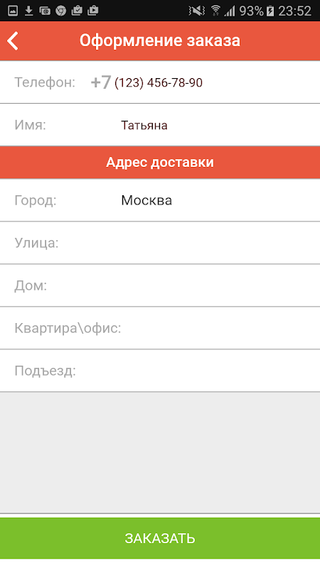 клиента, точный адрес доставки, даты/времени на которую нужна доставка, дополнительная