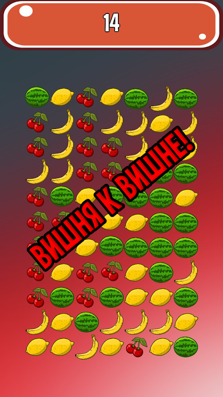Собери одинаковые фрукты вместе и взорви. Чем больше фруктов взорвалось за раз - тем больше очков. Звучит просто, согласен. НО ЭТО СЛОЖНЕЕ, ЧЕМ ТЕБЕ КАЖЕТСЯ НА ПЕРВЫЙ ВЗГЛЯД!