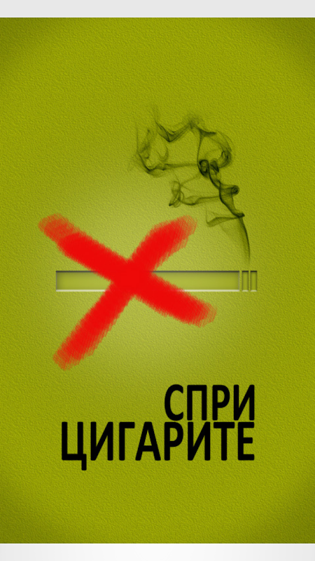 Spri Cigarite e aplikaciq za vashiq mobilen telefon, koqto vi pomaga da se otuchite ot tozi losh navik - pusheneto. Tq sadeistva na vasheto reshenie da sprete cigarite kato broi dnite v koito vie veche ne pushite, izchislqva spestenite ot vas pari za cigari i nakratko vi pokazva kak se vazstanovqva vasheto tqlo. "Spri Cigarite" stimulira vas i vasheto nachinanie po patq kam edin po-zdravosloven jivot! Kogato usetite, che vashiq cigaren glad vi pritesnqva, butona "Kriza" shte vi spasqva s kratki saveti. Shte se radvame tazi aplikaciq da pomogne na mnogo hora v Balgaria. Za da im pomognete i Vie, molq izpolzvaite butona "Spodeli".