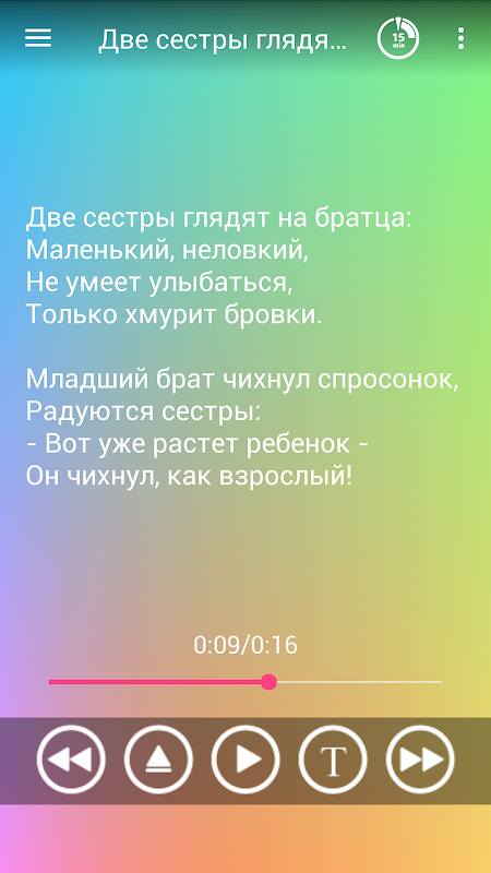 Die Anwendung „Reime für die Kleinen“ enthält folgende Funktionen: