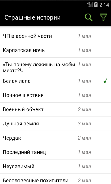 Nachdem die Geschichten zu lesen als Lese automatisch markiert sind, können Sie die Liste der Geschichten filtern und „All“ nur „lesen“ oder „ungelesen“ istorii.Est der Lage zu finden, die Geschichte des Namens angezeigt werden soll.