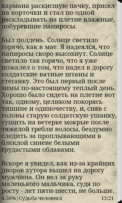 Eines dieser Werke ist die Kurzgeschichte "Das Schicksal des Menschen." Diese Geschichte ist voller Leben, tief realistisch. Hier der Schriftsteller geschickt nutzt ein ganzes Arsenal von künstlerischen Medien, die er meisterhaft.