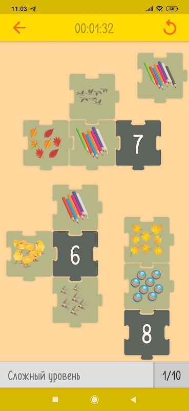 Суть игры "Счет предметов" в том, чтобы научить ребенка соотносить число с количеством предметов. Для этого нужно посчитать предметы на картинке и прикрепить ее к пазлу с соответствующим числом.
