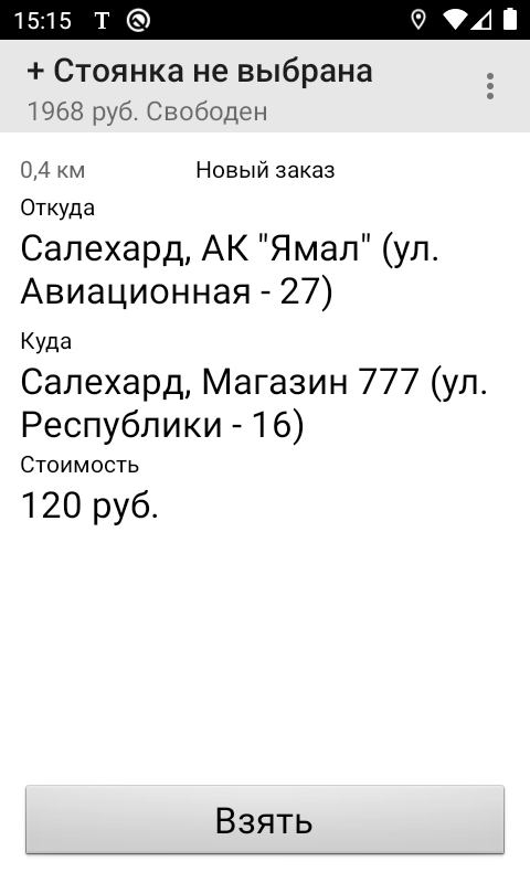 Das Programm für die Arbeit als Fahrer in einem Taxi Russland - Salechard.
