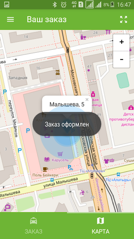 Anwendung für Taxi "Lemon Tree" in Jekaterinburg.