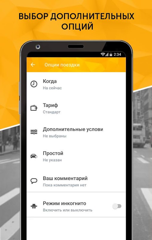 - Заказ авто с дополнительными услугами: кондиционер, загруженность салона, перевозка животных, курьерская доставка.
