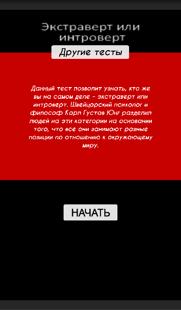 Данный тест позволит узнать, кто же вы на самом деле – экстраверт или интроверт. Швейцарский психолог и философ Карл Густав Юнг разделил людей на эти категории на основании того, что все они занимают разные позиции по отношению к окружающему миру. Кто-то любит постоянно общаться, вечно находится на публике, имеет множество друзей, обширные деловые связи и не представляет для себя иной жизни. Такие люди называются экстравертами. А кто-то не нуждается в шумной компании, предпочитает проводить большую часть времени в одиночестве, погрузившись в собственный внутренний мир и чувствуя себя вполне комфортно наедине с самим собой. Такие люди являются интровертами.