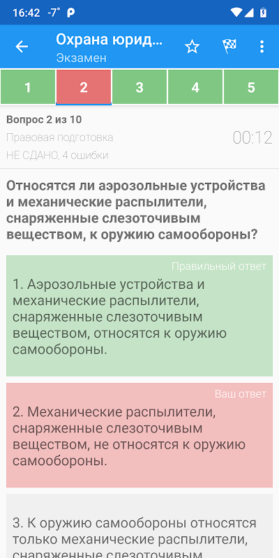 - режим "Обучение", который позволяет поэтапно изучить все вопросы выбранной категории