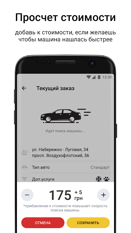• добавление стоимости к заказу - для более быстрого поиска машины, вы можете немного увеличить стоимость поездки