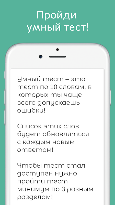 Wir haben auch eine einzigartige Funktion – „Smart Test“. Dabei handelt es sich um einen Test mit 10 Wörtern, bei dem Sie am häufigsten Fehler machen! Diese Liste wird aktualisiert, sobald Antworten eingehen.
