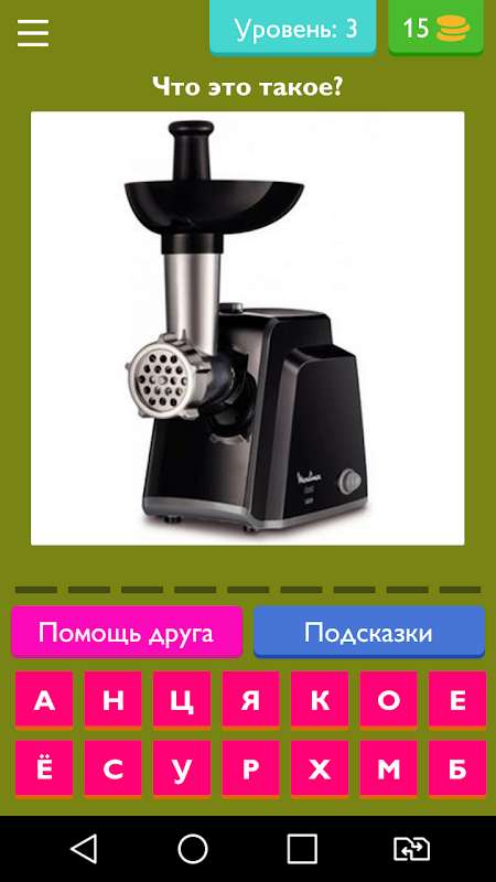Очень интересная и увлекательная викторина. Суть которой что бы игрок угадал название бытового кухонного прибора по картинке. Игра увлекательна тем, что подходит абсолютно каждому, будь это ребёнок или взрослый. Для взрослых это покажется очень легко, но для детей возможно будет не простой задачей.