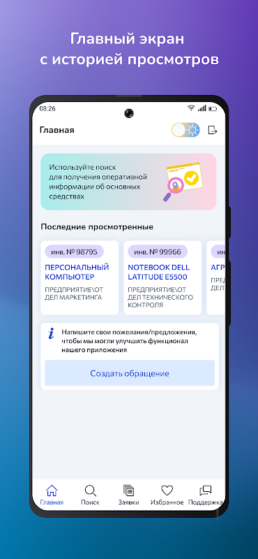 Die Anwendung wurde für Mitarbeiter des größten Unternehmens in Soligorsk entwickelt. Entwickelt, um Betriebsinformationen über Anlagevermögen zu erhalten.