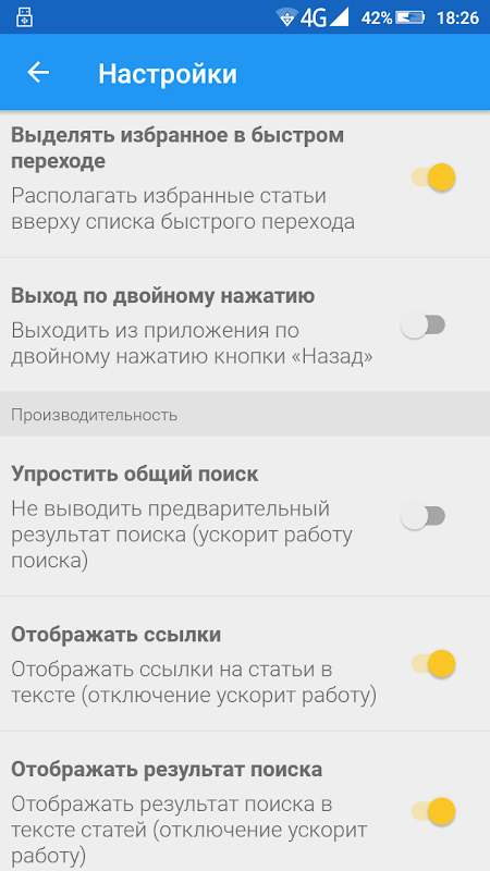 - Навигация и поиск: в приложении удобная навигация в виде дерева оглавления, с возможностью поиска и быстрым переходом