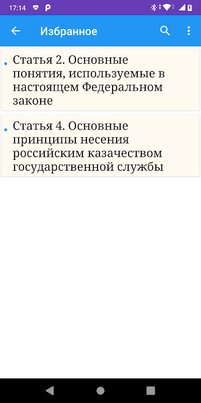 - Добавляйте нужные статьи в список избранное, для быстрого доступа к ним из меню;